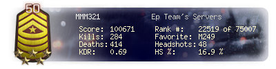 | Kills | 284 | Deaths | 414 | Kill / Death | 0.69 |