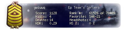 | Headshots | 0 | Suicides | 0 | Headshot / Kill | 0 % |