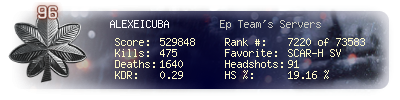 | Headshots | 91 | Suicides | 8 | Headshot / Kill | 19.16 % |