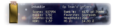 | Headshots | 245 | Suicides | 19 | Headshot / Kill | 13.56 % |
