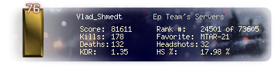 | Headshots | 32 | Suicides | 0 | Headshot / Kill | 17.98 % |