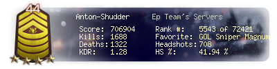 | Headshots | 1138 | Suicides | 50 | Headshot / Kill | 41.14 % |