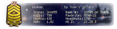 | Kill-streak | 20 | Death-streak | 6 | Team Kills | 2 |