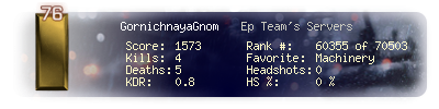 | Headshots | 0 | Suicides | 0 | Headshot / Kill | 0 % |