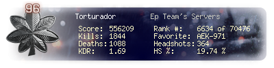 | Headshots | 562 | Suicides | 21 | Headshot / Kill | 18.56 % |