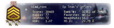 | Headshots | 16 | Suicides | 0 | Headshot / Kill | 20.78 % |