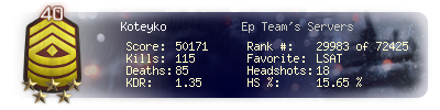 | Kills | 43 | Deaths | 40 | Kill / Death | 1.08 |