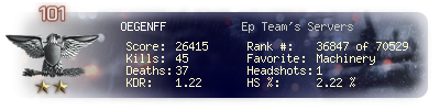| Kills | 45 | Deaths | 37 | Kill / Death | 1.22 |
