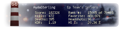 | Headshots | 96 | Suicides | 1 | Headshot / Kill | 20.34 % |