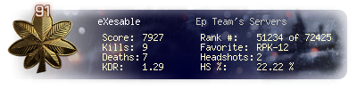 | Headshots | 2 | Suicides | 0 | Headshot / Kill | 22.22 % |