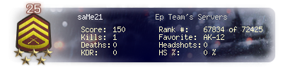 | Headshots | 0 | Suicides | 0 | Headshot / Kill | 0 % |