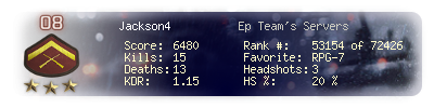 | Kill-streak | 4 | Death-streak | 3 | Team Kills | 1 |