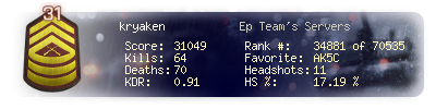 | Kills | 64 | Deaths | 70 | Kill / Death | 0.91 |