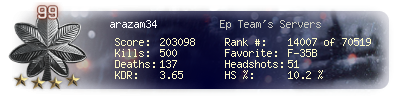 | Kills | 500 | Deaths | 137 | Kill / Death | 3.65 |