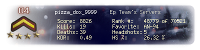 | Kill-streak | 1 | Death-streak | 8 | Team Kills | 0 |