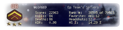 | Kill-streak | 5 | Death-streak | 5 | Team Kills | 0 |