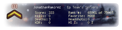 | Headshots | 0 | Suicides | 0 | Headshot / Kill | 0 % |
