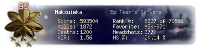 | Headshots | 236 | Suicides | 25 | Headshot / Kill | 19.42 % |