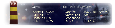| Headshots | 22 | Suicides | 2 | Headshot / Kill | 22.45 % |