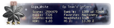 | Kills | 7326 | Deaths | 4008 | Kill / Death | 1.83 |
