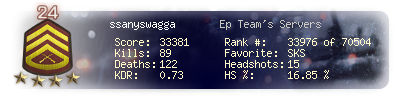 | Headshots | 8 | Suicides | 0 | Headshot / Kill | 15.09 % |
