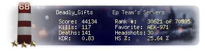 | Kill-streak | 7 | Death-streak | 13 | Team Kills | 0 |
