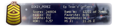 | Kills | 302 | Deaths | 532 | Kill / Death | 0.57 |