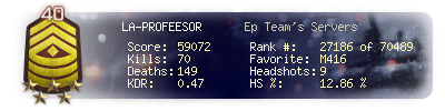 | Kills | 70 | Deaths | 149 | Kill / Death | 0.47 |