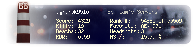 | Headshots | 3 | Suicides | 0 | Headshot / Kill | 15.79 % |