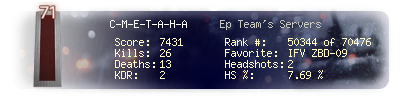 | Headshots | 2 | Suicides | 0 | Headshot / Kill | 7.69 % |