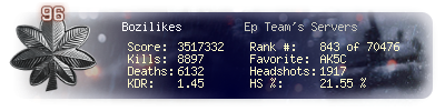 | Kills | 8897 | Deaths | 6132 | Kill / Death | 1.45 |