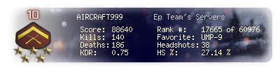 | Kill-streak | 4 | Death-streak | 7 | Team Kills | 0 |