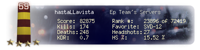 | Kill-streak | 7 | Death-streak | 13 | Team Kills | 0 |