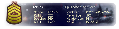 | Headshots | 64 | Suicides | 5 | Headshot / Kill | 19.88 % |