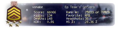 | Kill-streak | 7 | Death-streak | 8 | Team Kills | 0 |