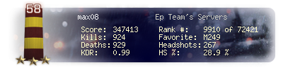 | Headshots | 267 | Suicides | 18 | Headshot / Kill | 28.9 % |