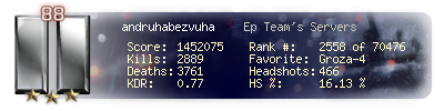 | Kills | 3903 | Deaths | 4905 | Kill / Death | 0.8 |
