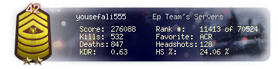 | Kills | 532 | Deaths | 847 | Kill / Death | 0.63 |