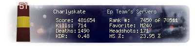 | Headshots | 139 | Suicides | 11 | Headshot / Kill | 25.27 % |