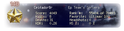 | Headshots | 0 | Suicides | 0 | Headshot / Kill | 0 % |