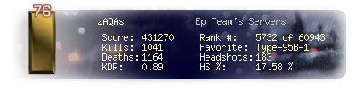 | Headshots | 183 | Suicides | 9 | Headshot / Kill | 17.58 % |