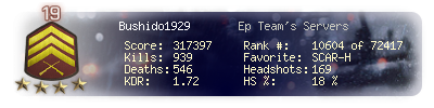 | Kill-streak | 13 | Death-streak | 9 | Team Kills | 0 |