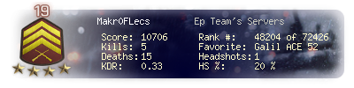 | Kills | 5 | Deaths | 15 | Kill / Death | 0.33 |