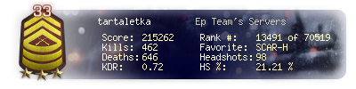 | Kill-streak | 6 | Death-streak | 13 | Team Kills | 1 |