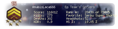 | Headshots | 52 | Suicides | 2 | Headshot / Kill | 19.05 % |