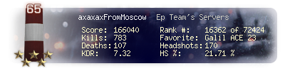| Kills | 783 | Deaths | 107 | Kill / Death | 7.32 |