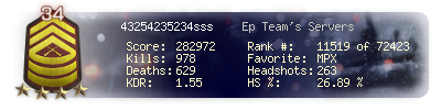 | Headshots | 150 | Suicides | 3 | Headshot / Kill | 27.08 % |