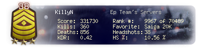 | Kills | 360 | Deaths | 856 | Kill / Death | 0.42 |