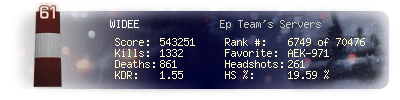 | Kills | 3479 | Deaths | 1986 | Kill / Death | 1.75 |