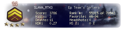 | Kill-streak | 1 | Death-streak | 6 | Team Kills | 0 |